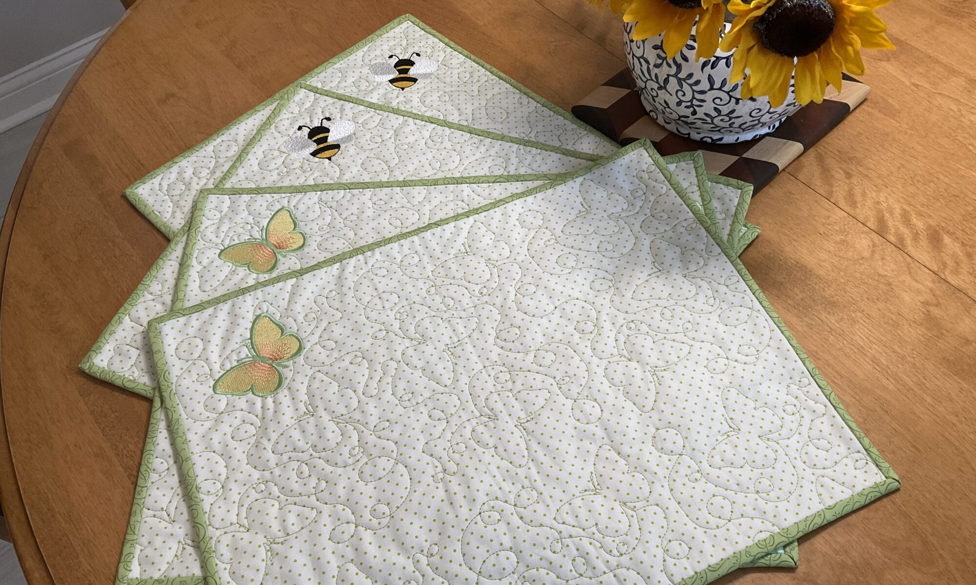 You will learn and practice the technique on a simple quilt sandwich, which you can later turn into a pair of place mats. Once you’ve learned the technique, you can use the over 300 designs in the Amelie Scott Edge-to-Edge Quilting product line to quilt anything from table runners to twin size quilts.