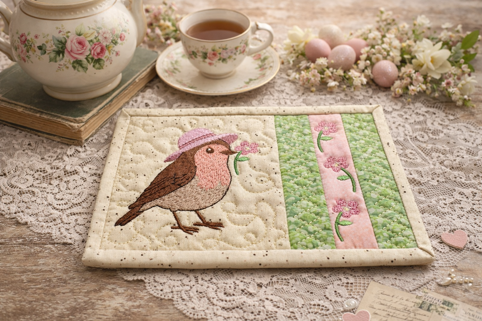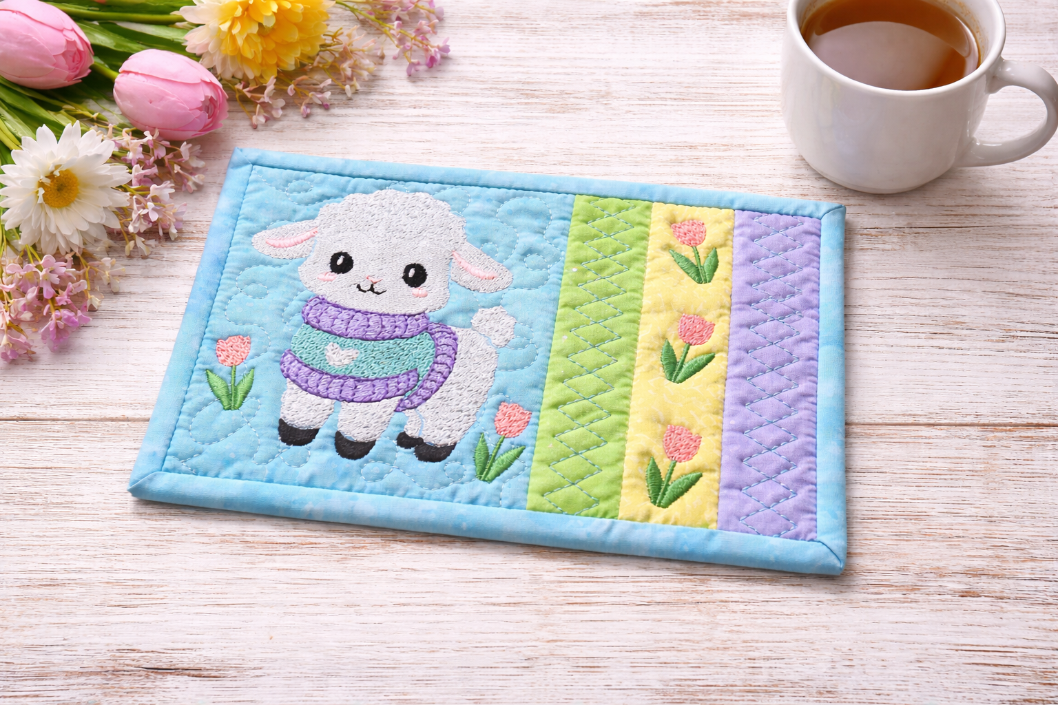 This mug rug collection captures the gentle charm of Spring, with soft colors, playful baby animals, and timeless embroidery.  It’s perfect for the young people in your life, gifts, or any moment that deserves a little softness.